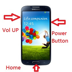 رفع الصوت + زر الرئيسية + زر الطاقة